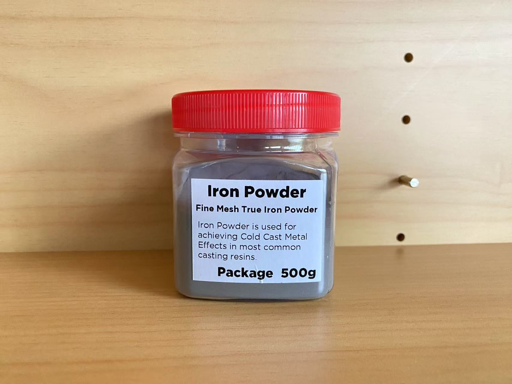 Iron powder fillers are more commonly used in resins for producing cold cast metal effects. Generally, higher amounts of metal powder are used to give a true metallic effect. This may be buffed, polished and a patina applied if required. Iron powder filler can be mixed with a variety of products including Forton, polyester, polyurethane and epoxy resins. Great for use when creating cold cast effects. Our Iron powder is a -325 mesh with an apparent medium density of 2.2 – 2.8.